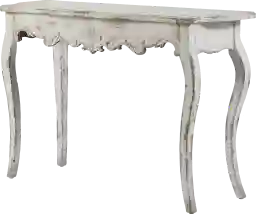 This piece features a unique blend of "boho" and vintage-inspired elements. The signature scallop edge at the tabletop provides a soft, decorative touch, while the elegant cabriole legs—known for their classic S-curve—offer a refined, traditional silhouette. These features, combined with the weathered off-white finish, make it an excellent choice for homes looking to achieve a relaxed, curated aesthetic.