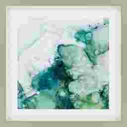 Swirls of green are framed in a silver finish shadow box molding.
