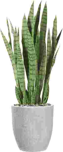 Refresh your space with the sleek, upright beauty of the Zenara 30" UV Artificial Sansevieria. With tall, variegated leaves and a naturally architectural shape, this lifelike plant brings crisp, modern greenery to any setting without the need for watering or upkeep. Crafted with UV-treated foliage, Zenara maintains its rich green color and realistic patterning. Its versatile 30-inch height makes it an ideal accent for patios, balconies, covered porches, entryways, and indoor areas. The plant is set in a white fiber-cast planter featuring subtle etched texture. Lightweight yet durable, the planter offers the refined look of crafted material with a clean, contemporary silhouette that pairs beautifully with the plant's sculptural form. Zenara delivers effortless, maintenance-free greenery designed to enhance both indoor and outdoor space.