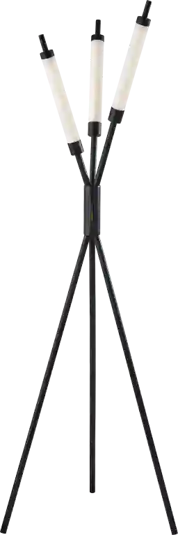For a modern statement piece that adds vibrant ambient lighting, look no further than the Zenith Loop color changing floor lamp. The lamp provides an eye-catching silhouette. Three slender black metal poles rise from a tripod base and crisscross before each leads to a 10 tall slender cylindrical shade. The wide footprint of the lamp and elevated height of the integrated shades make this lamp a perfect choice in room corners or beside couches and love seats. Both economical and versatile, the three integrated 12W eco-friendly LEDs together produce up to 3,000 lumens to brighten your space. Operated by a touch switch conveniently located on the stem, the shades project light in a full spectrum of RGB color and feature three brightness settings all controlled by the touch of a finger. Partial assembly may be required.