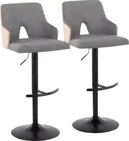 With its peek-a-boo wood back, the Zennia III barstool is both playful and refined, spirited and sophisticated. Add the sleek wood seat back, fabric upholstery, and bent wood tapered legs, this design is perfect for any space or decor style. Customer assembly is required.