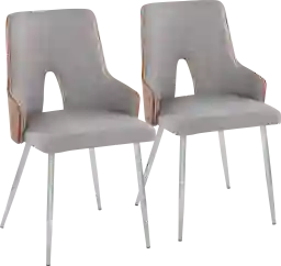 Enjoy the Mid-Century style and comfort of the Zennia IV dining chair. A padded backrest and seat are upholstered in light gray fabric and accented by a walnut-finished bent wood back and legs. Customer assembly is required.