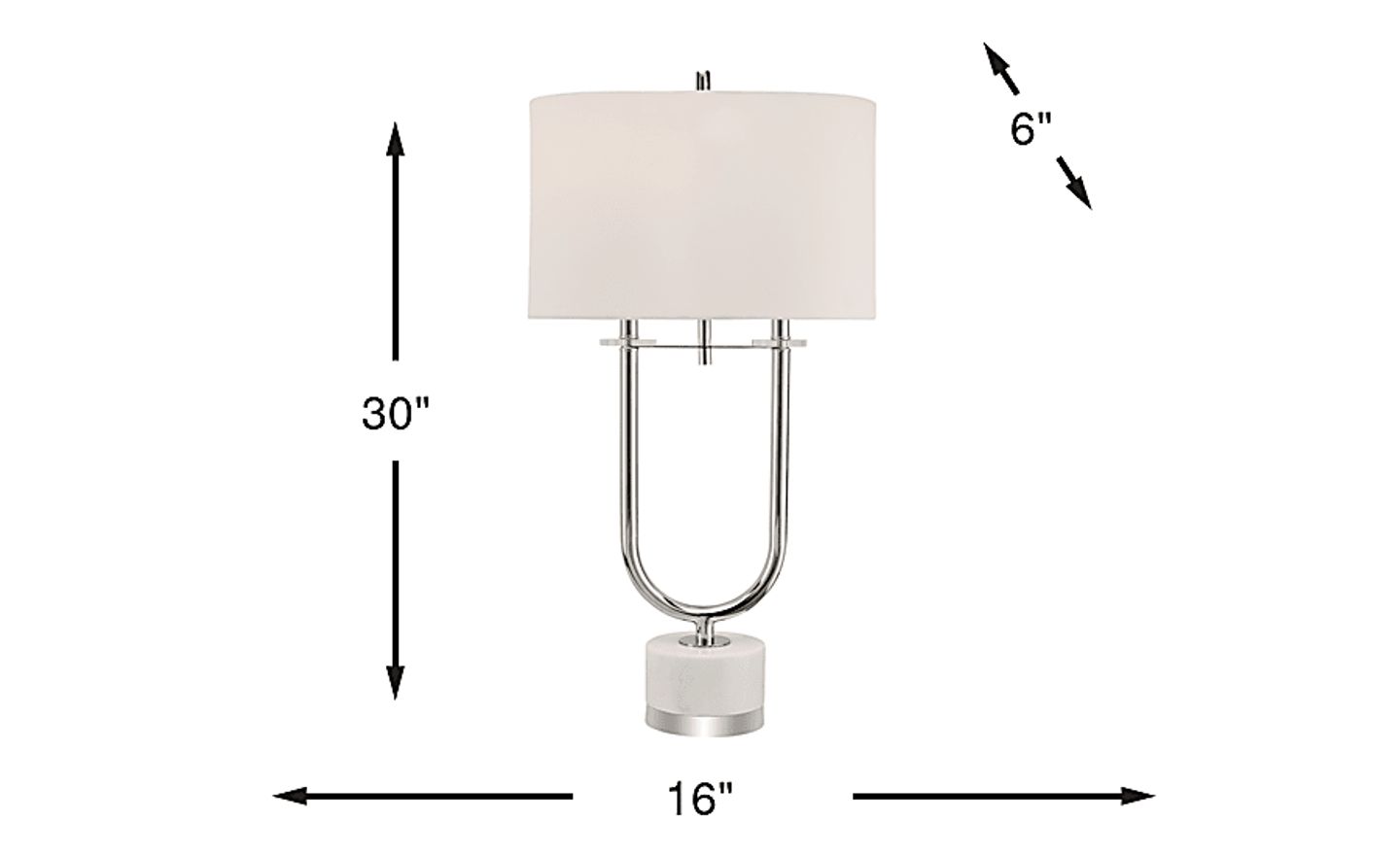 A strikingly minimalist stone base and stainless steel body holding aloft a beige figure-8 shade make the Zenya lamp a shining example of contemporary poise and simplicity. This piece has a three-way switch and can accommodate two maximum 100 watt bulbs (not included).