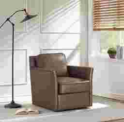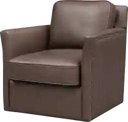 Indulge in opulence with this striking Zettle accent chair. Its nail head trim and dark brown leather-match upholstery combine style and comfort to elevate any home office or living room. The removable seat cushions make cleaning a breeze, while the swivel action provides flexibility. With every use, experience exceptional quality and craftsmanship. Customer assembly is required.