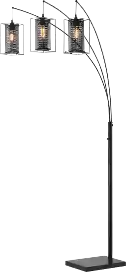 Introducing the elegant matte black Zimke Cove 3-arc floor lamp, a striking addition to any modern living space. Crafted with a keen eye for detail, this lamp boasts an industrial design featuring an Edison style vintage bulb and cage mesh lamp shade. The all-metal construction adds durability and longevity to the piece. Perfect for sectionals and sofas, this lamp provides a warm and inviting atmosphere, elevating the overall aesthetic of your home. This lamp is a perfect balance of style and functionality, embodying a timeless charm that is sure to impress. Partial assembly may be required.