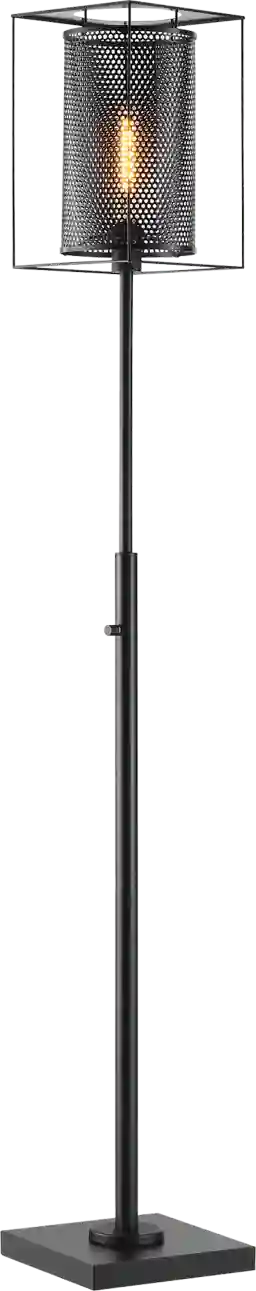 Introducing the elegant matte black Zimke Cove floor lamp, a striking addition to any modern living space. Crafted with a keen eye for detail, this lamp boasts an industrial design featuring an Edison style vintage bulb and cage mesh lamp shade. The all-metal construction adds durability and longevity to the piece. Perfect for sectionals and sofas, this lamp provides a warm and inviting atmosphere, elevating the overall aesthetic of your home. This lamp is a perfect balance of style and functionality, embodying a timeless charm that is sure to impress. Partial assembly may be required.