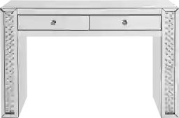 This desk is constructed with a mirrored frame and straight legs, designed for stability and daily use in a home office or bedroom setting. While mirrored furniture requires more careful handling than solid wood, its construction is robust. By following standard weight limits for writing desks and avoiding high-impact contact, the mirrored panels will remain a durable and striking focal point in your home for years.