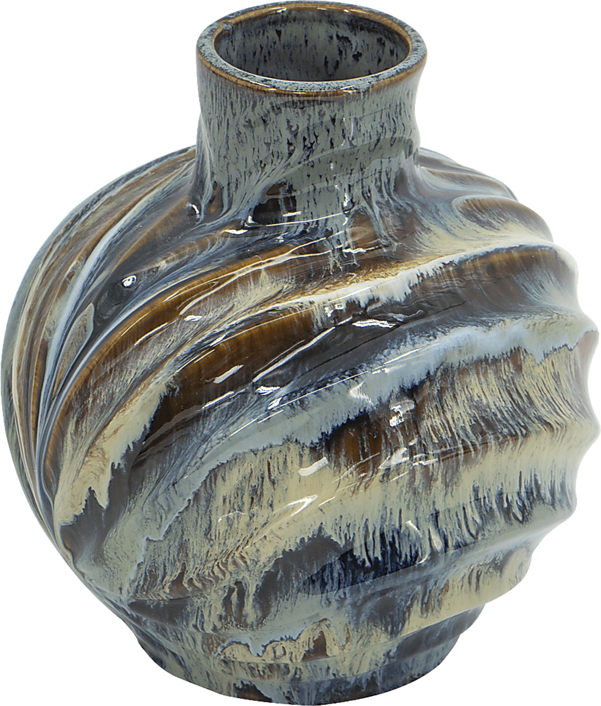 Crafted from high-quality ceramic and sporting an organic reactive glaze finish, the Zitlau III blue vase boasts an intriguing blend of blue and white colors across the curved surface. Perfect for use as a standalone decorative accent or as a vessel for a custom floral arrangement. This vase is an ideal size for your mantel, dresser, shelving unit, sideboard, desktop, tabletop, or anywhere throughout your home or office.