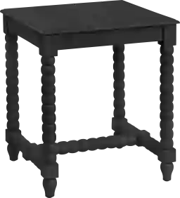 The Zoak black end table offers the ideal balance of traditional form and modern refinement. This four-post design showcases a stacked, craftsman style construction that adds a decoratively classic aesthetic to the overall table. The painted black finish accentuates its curved nature while bestowing a layer of drama that commands attention. Whether seeking a foundation piece for your favorite bedside lamp or an accent that complements your home office, this timeless design is guaranteed to elevate your interior. Customer assembly is required.