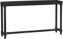 The Zoak black sofa table offers the ideal balance of traditional form and modern refinement. This four-post design showcases a stacked, craftsman style construction that adds a decoratively classic aesthetic to the overall table. The painted black finish accentuates its curved nature while bestowing a layer of drama that commands attention. Allow the craftsmanship of this eye-catching, sofa table to be the next conversation piece in your home. Customer assembly is required.
