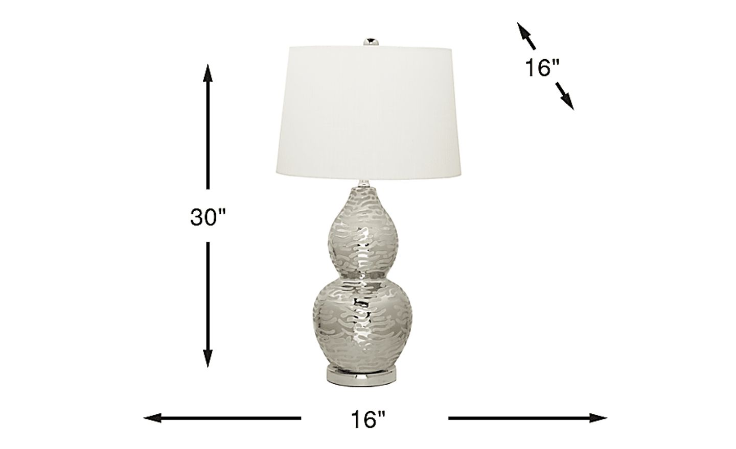 Stunning in silver, the Zoila lamp's unique etched zebra stripe pattern gives it an elegant, modern look. Featuring a curvy base with a contrasting beige linen drum shade, this lamp casts a lovely glow in any room. This lamp takes a single Type A 100 Watt maximum bulb and features a 3 way socket.
