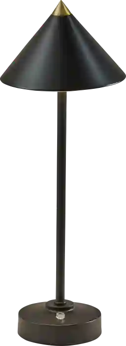 Introducing the Zug Way Black Lamp, a versatile lighting solution designed for both indoor and outdoor use. With its sleek black finish and elegant tapered cone-shaped shade, this lamp brings a touch of sophistication to any space. Standing at a height of 15 inches, it's perfect for tabletops, desks, or outdoor entertaining areas. Equipped with a convenient 3 level touch dimmer switch, you can easily adjust the brightness to create the perfect ambiance. Plus, with its IPX4 location rating, you can confidently use it outdoors, even in damp conditions. Partial assembly may be required.