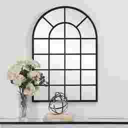 Finished in a matte black, this metal, arched windowpane frame Zulle mirror will add interest to any space.