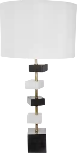 Add a contemporary vibe to your living room with the Zurraquin Avenue lamp. Featuring gold accents connecting white and black floating marble squares above a black marble base for a linear look that compliments your sophisticated decor. Partial assembly may be required.