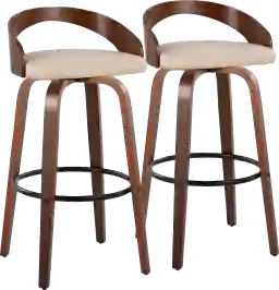 The Zykan IX fixed-height barstool features a curved low back and rounded legs. This design radiates sophistication while modern features like a cushioned seat that swivels and wood legs with built-in footrest bring this piece into a class all of its own. Customer assembly is required.