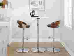 The Zykan XXV adjustable barstool features a sleek curved low back design. This design radiates sophistication while modern features like a cushioned seat that swivels and adjustable base with built-in footrest bring this piece into a class all of its own. Customer assembly is required.