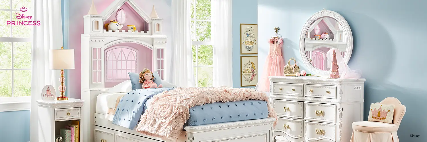 Seffner, FL (9/2/25) - With their most enchanting kids collection yet, the new Disney Princess bedrooms feature pieces inspired by storybook castles, Cinderella’s carriage, and classic Disney royalty. From shimmering finishes to beds that light up like the night sky, each piece is designed with beauty and brilliance.