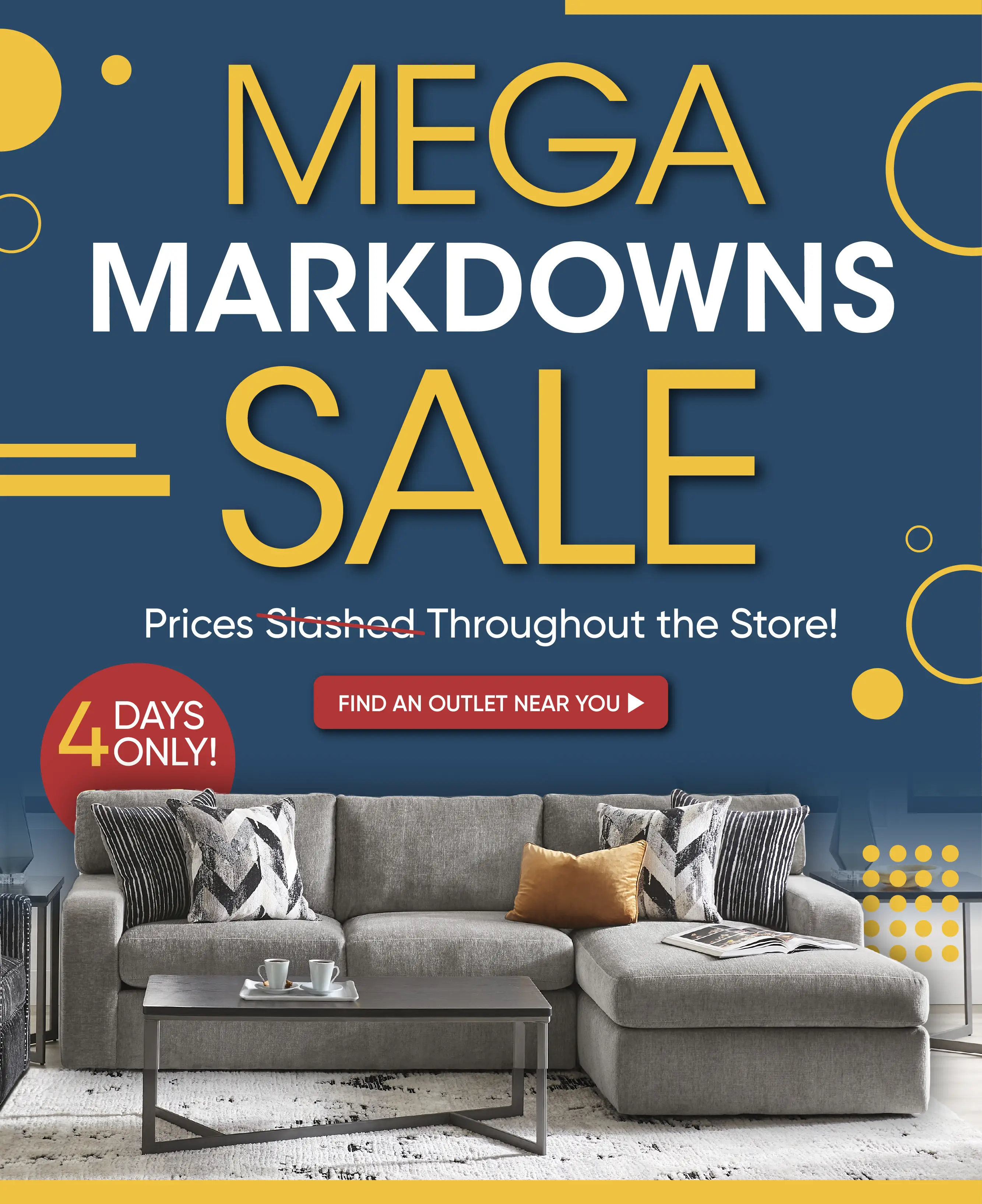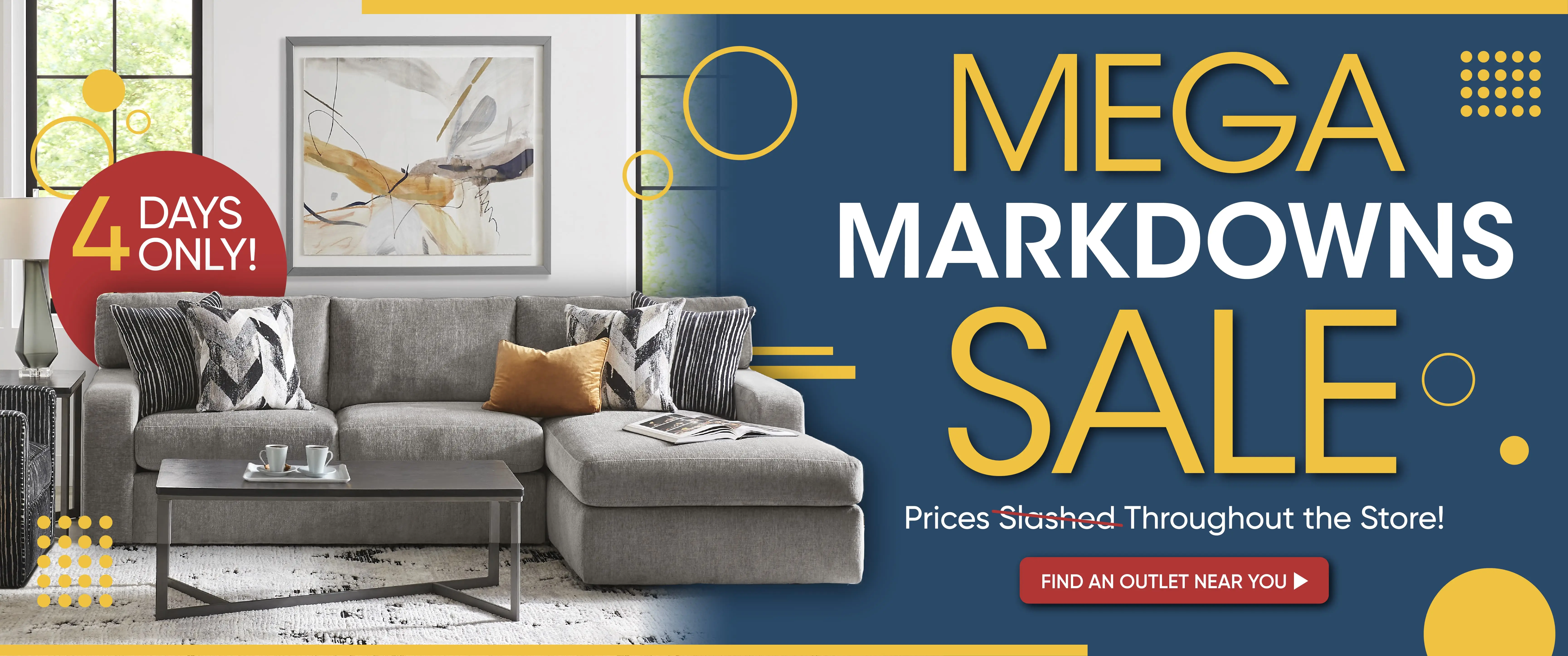 Outlet store deals are always changing and vary by location, so the selection in-store may differ from what you see online. If you can’t make it to an outlet, you can shop our last chance clearance online anytime for big savings on furniture for every room.